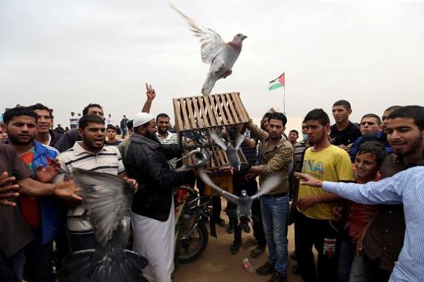 آزاد کردن کبوتران توسط راهپیمایان فلسطینی در تظاهرات بزرگ بازگشتدر حالی که اسرائیل امسال هفتادمین سالگرد تاسیس کشور خود را جشن میگیرد، فلسطینینان تظاهرات اعتراضی خود را از سیام مارس یعنی روز «یوم الارض» آغاز کرده ومی گویند که تا ۱۵ ماه مه که آن را «روز نکبت» میخوانند ادامه خواهند داد. در ۱۴ ماه مه سال ۱۹۴۸ کشور اسرائیل با قطعنامه سازمان ملل متحد تشکیل شد. فلسطینیان روز پس از آن را بخاطر اخراج و بیرون رانده شدن از سرزمینهای خود «روز نکبت» میخوانند.دو سوم فلسطینیان ساکن نوار غزه را آوارگان فلسطینی و فرزندان آنها تشکیل میدهند که خواستار بازگشت به سرزمینهای اجدادی خود هستند.