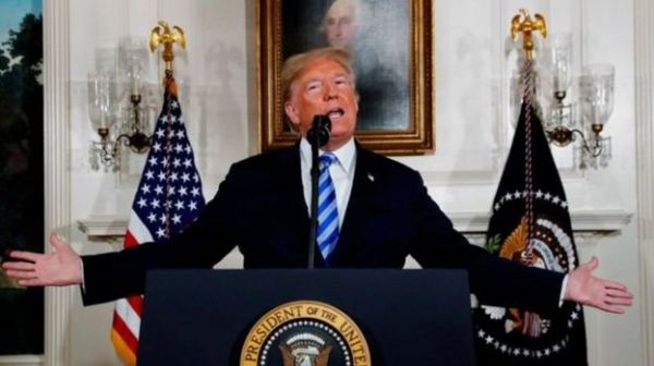 دونالد ترامپ، رئیس جمهور آمریکا، هنگام خروج از توافق هستهای به تندی از حکومت ایران انتقاد و اتهامهای تندی را علیه آن مطرح کرد حدود دوهفته پیش آقای ترامپ رسما کشورش را از توافق هستهای میان ایران و شش قدرت جهانی خارج کرد. او فرمانی را امضا کرد که بنا بر آن تحریمهای هستهای ایران که بر اساس برجام تعلیق شده بود، طی یک دوره زمانی برمیگردد.حسن روحانی، رئیس جمهور ایران، گفت که با وجود خروج آمریکا از توافق هستهای، ایران فعلا از آن خارج نخواهد شد تا پیامدهای تصمیم آمریکا را ارزیابی کند.