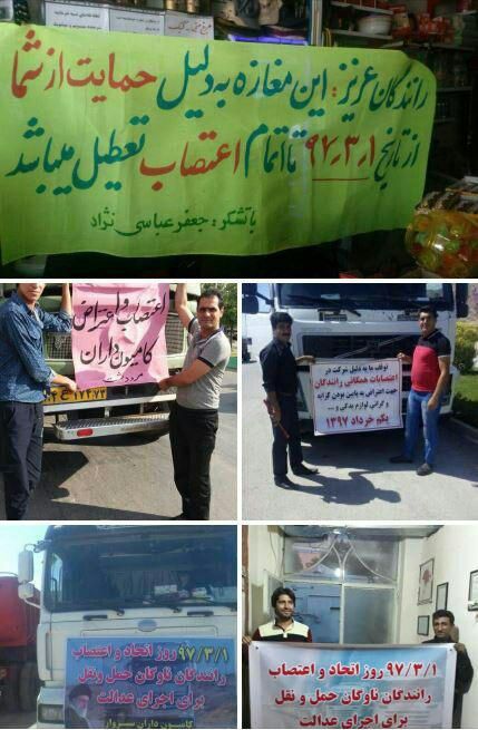 اخبار و تصاویر تصاویر منتشر شده در شبکه های اجتماعی حاکی از آن است که گروهی از کامیونداران و رانندگان ایران، در اعتراض به مشکلات صنفی خود، دست به اعتصاب زده اند.بر اساس این اخبار و تصاویر، کامیونداران و رانندگان در برخی از استانها، از جمله خراسان رضوی، هرمزگان، فارس، لرستان، کرمان، اصفهان، قزوین، روز سه شنبه اول خرداد ماه از حمل بار خودداری کرده و خواستار رفع مشکلات خود شدند.