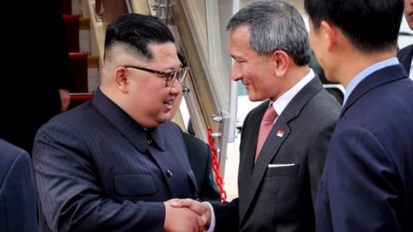 کیم جونگ- اون رهبر کره شمالی به هنگام ورود به سنگاپور کیم جونگ-اون، رهبر کره شمالی، برای دیدار و مذاکره با دونالد ترامپ، رئیس جمهور آمریکا وارد سنگاپور شده است.گزارش شده که هواپیمای حامل آقای ترامپ هم در راه سنگاپور است.