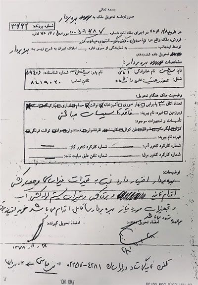 بدینوسیله سند تحویل محلی در لواسان ابتدای جاده کُند را که به دستور مقام معظم رهبری به اینجانب تحویل شده است برای اطلاع ملت شریف ایران منتشر میکنم.