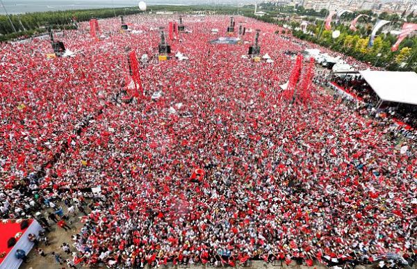 گردهمایی حامیان محرم اینجه جمع کثیری از مخالفان در آخرین روز تبلیغات انتخاباتی در ترکیه در حمایت از محرم اینجه، رقیب اصلی رجب طیب اردوغان دراستانبول تجمع کردند.آقای اینجه، نامزد راست میانه از حزب جمهوریخواه خلق رقیب رجب طیب اردوغان، رئیس جمهور ترکیه است. آقای اردوغان در ۱۵ سال گذشته بر صحنه سیاسی ترکیه تسلط داشته است.