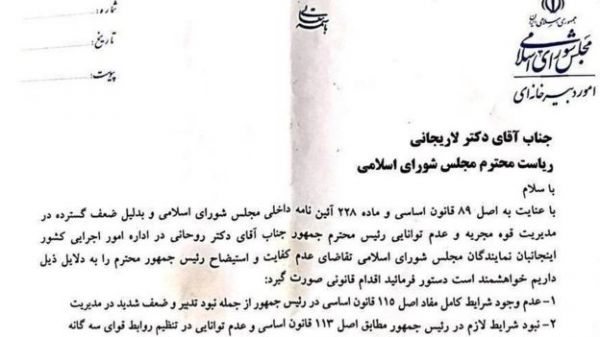 حسن روحانی گفته "اگر کسی فکر می‌کند دولت استعفا می‌دهد، کنار می‌کشد یا می‌رود، اشتباه می‌کند."این طرح بر سربرگ مجلس و خطاب به علی لاریجانی است اما تاریخ ندارد و تصویری از امضا احتمالی آن توسط نمایندگان منتشر نشده است.