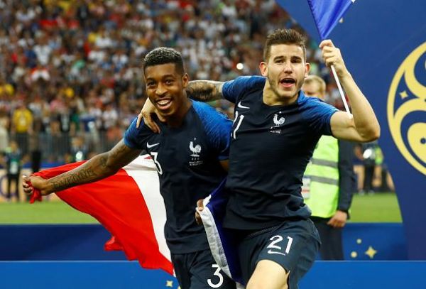 تیم ملی فرانسه پس از دریافت کاپ قهرمانی جام جهانی روسیه