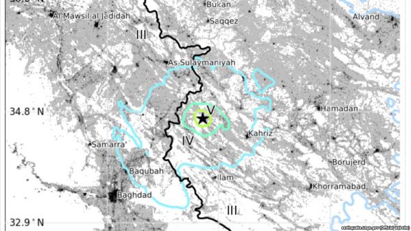 سازمان زمینشناسی آمریکا مرکز این زمینلرزه را ۳۵ کیلومتری شمال شرقی سرپل ذهاب و قدرت آن را ۵.۹ ریشتر اعلام کرده است.