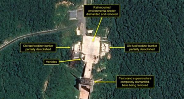 کارشناسان آمریکایی میگویند کرهشمالی تخریب ایستگاه پرتاب موشک سوها در ساحل غربی این کشور را آغاز کرده است. سایت خبری "۳۸ شمال" وابسته به موسسه "آمریکا- کره" تصاویری ماهوارهای منتشر کرده که ۲۰ و ۲۱ ژوئیه (۲۹ و ۳۰ تیر) از ایستگاه سوها گرفته شدهاند.