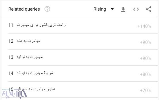 نکته قابل توجه دیگر مربوط به سرچهای مشابه مهاجرت در گوگل است. به طوریکه سرچهای مشابهای همچون ؛ «مهاجرت به روسیه» ، «ایسلند مهاجرت» ، «بهترین کشورها برای مهاجرت» ، «راههای مهاجرت به کانادا» و «مهاجرت به کویت» دارای بالاترین میزان جستوجو در سرچهای مشابه هستند.