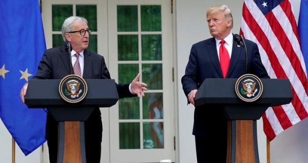 ژان کلود یونکر (چپ)، رئیس کمیسیون اروپا و دونالد ترامپ، رئیس جمهوری آمریکا در کنفرانسی خبری در ژوئیه ۲۰۱۸ آلتمایر علیرغم توافق بهدستآمده میان کمیسیون اتحادیه اروپا و دولت آمریکا، نگرانی خود را از تعرفههای گمرکی جدید ابراز داشت و گفت: «ما در چند قدمی پرتگاه توانستیم نجات یابیم و جلوی سقوط خود را بگیریم.»او افزود: «جنگی تجارتی در جهان هیچ برندهای نخواهد داشت، بلکه تمامی شرکتکنندگان در آن بازنده خواهند بود. سیاست اجازه ندارد که فرصتهای شغلی در صنایع فولاد و آلومینیوم و خودروسازی را به خطر بیاندازد. توافق میان ژان کلود یونکر، رئیس کمیسیون اروپا و دونالد ترامپ، رئیس جمهوری آمریکا حفظ صدها هزار فرصت شغلی در آلمان و اروپا را به دنبال داشته است.»
