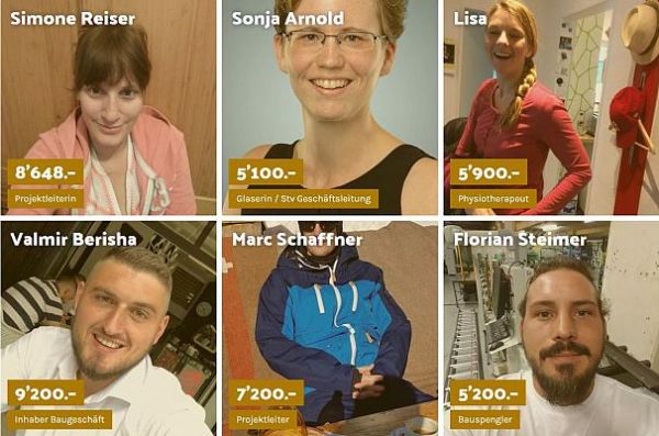 تصویری از وبسایت «دستمزدت را نشان بده» در گروه سنی ۱۶ تا ۲۵ سال. برابری دستمزد میان زن و مرد، شهروند و مهاجر اتحادیه اصناف سوئیس امیدوار است که این حرکت بتواند باب گفتگو درباره حقوق و دستمزد را باز کند و زنان و مردان بتوانند نظر روشنی درباره درآمد همتایانشان در شغل و با ساعات کاری مشابه داشته باشند.