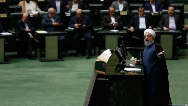 حسن روحانی رئیس جمهوری ایران در مجلس شورای اسلامیمقاله ای در نشریه فارین پالیسی از آلکس وطنخواه، پژوهشگر ارشد «انستیتو خاورمیانه» صدای آمریکا :مجلس ایران پیش از شنیدن پاسخ های حسن روحانی، وزیر امور اقتصادی و دارایی و وزیر کار او را به دلیل بی کفایتی برکنار کرده بود.