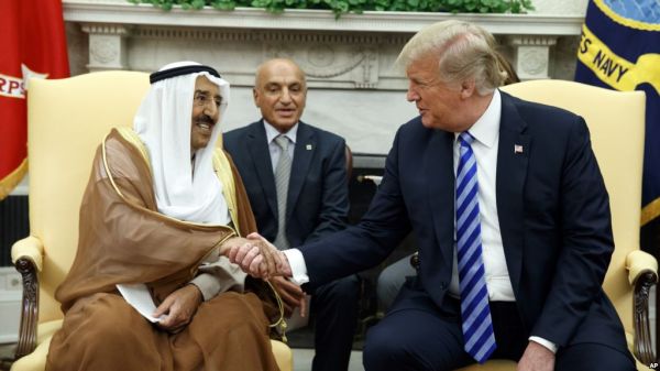 دونالد ترامپ (راست) و امیر کویت در دیدار روز چهارشنبه خود در کاخ سفید رئیسجمهوری آمریکا روز چهارشنبه ۱۴ شهریور گفت نمیتواند پیشبینی کند که در ارتباط با ایران چه اتفاقی رخ خواهد داد و برایش هم مهم نیست که رهبران ایران بخواهند با او صحبت کنند یا نه.به گزارش خبرگزاری رویترز، دونالد ترامپ این اظهارات را پیش از ملاقات با امیر کویت در واشینگتن بیان کرد.