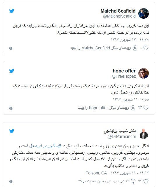 همزمان با انتشار نامه کروبی، کاربران در توییتر هشتگ (#رفسنجانی_گیت) را داغ کردند.
