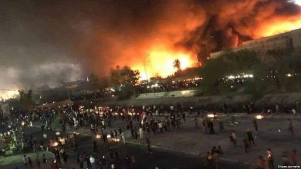 تصویری که در شبکههای اجتماعی از به آتش کشیده شدن ساختمان کنسولگری ایران منتشر شده است کنسولگری ایران در شهر بصره عراق روز جمعه هدف حمله معترضان دولت قرار گرفت و به آتش کشیده شد.اعتراضات در شهر نفتخیز بصره از روز دوشنبه در واکنش به ناکارآمدی دولت در ارائه خدمات عمومی همچون آب آشامیدنی و برق آغاز شده است.