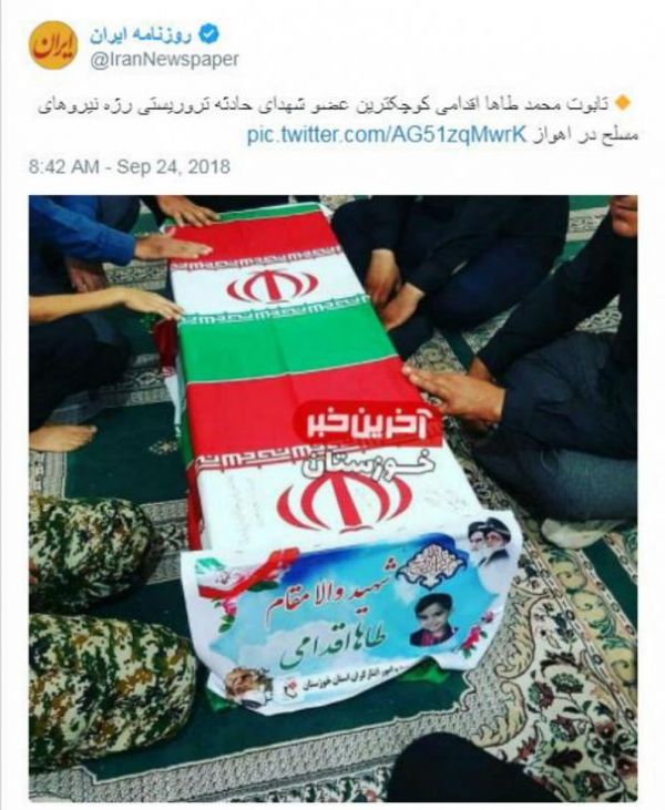 در میان کشته شدگان، نظامی و غیرنظامی، کودک و معلول جنگ ایران و عراق وجود دارد کشتهشدگان واقعه حمله به رژه نیروهای مسلح ایران در اهواز با حضور مقام های دولتی و نظامی، در مرکز استان خوزستان در جنوب غربی ایران تشییع شدهاند.چند عضو کابینه حسن روحانی، رئیس جمهور ایران، شماری از فرماندهان سپاه و مقام های محلی دراین مراسم حضور داشته اند.