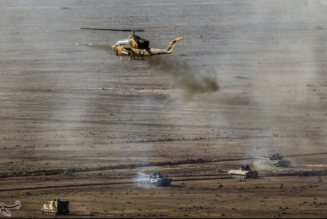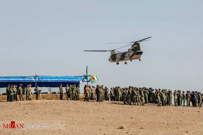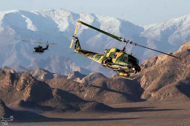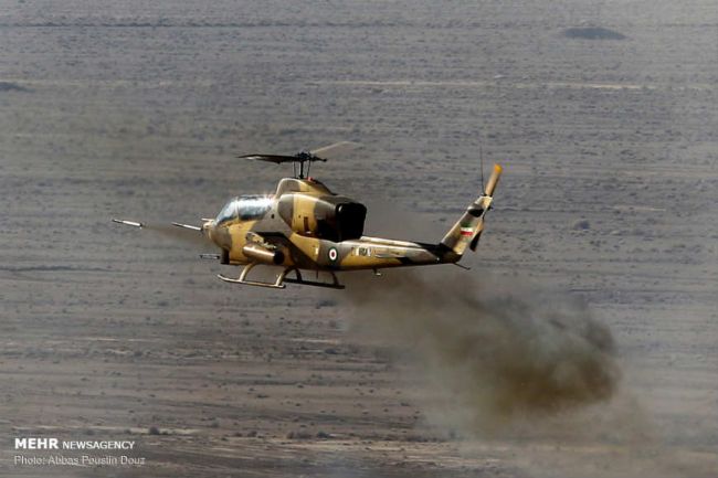 هلی‌کوپتر ترابری شینوک ساخت آمریکاهلی‌کوپتر بل ای‌اچ-۱ (کبرا) ساخت آمریکافراتر از اینها فقط با نگاهی سطحی به رزمایش نیروی زمینی ارتش عمق بلاهت‎ این فرماندهان سیاسی- عقیدتی پیدا می‌شود. بلاهتی که نه‌تنها از نظامیان بلکه بر مخاطبان غیرنظامی نیز پوشیده نیست. حتی ساده‌ترین اصول نظامی هم در این رزمایش رعایت نشده. پوشش منطقه نصرآباد اصفهان خاکی است و بسیاری از نظامی‎های حاضر در این مانور بجای اینکه از لباس‌های خاکی برای استتار استفاده کنند لباس‌هایی برتن دارند معروف به (استتار سبز لجنی) که مخصوص مناطق جنگلی یا پوشش‌های گیاهی سبز است!لباس استتار (سبز لجنی) بر تن فرماندهان و بخشی از نیروهایی که در رزمایش نیروزی زمینی ارتش شرکت کردند
