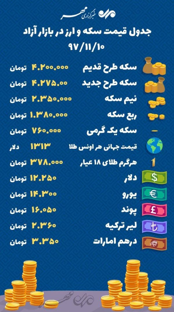 قیمت‌ها در بازار ارز و سکه از دید خبرگزاری مهر