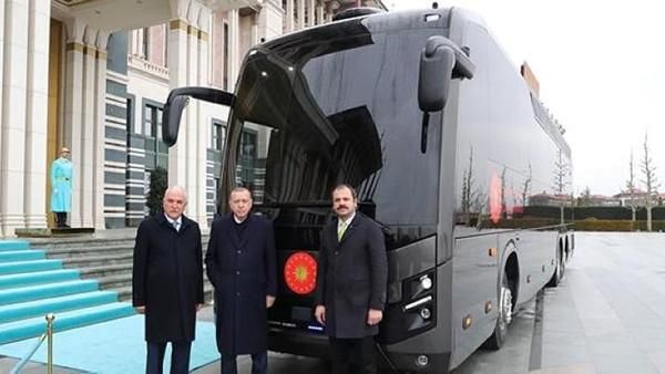 وبگاه أحوال گزارش کرد شرکت BMC که در زمینه صنایع نظامی فعالیت دارد، یک اتوبوس ویژه به کاخ ریاستجمهوری ترکیه برده و رئیسجمهوری ترکیه شخصا برای تحویل گرفتن آن حاضر شد. طالب ترک و طاها یاسین اوزترک، دو عضو هیات مدیره این شرکت نیز در این مراسم حاضر شده و توضیحاتی درباره این هدیه به اردوغان دادند.