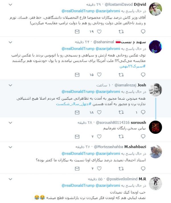 توییت وزیرارتباطات ایران برای ترامپ و واکنش کاربران توئیتر