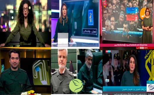 ایران بریفینگ: روز گذشته و همزمان با پوشیدن یونیفرم سبز رنگ سپاه پاسداران توسط نمایندگان مجلس ایران و بخشی از مجریان تلویزیون جمهوری اسلامی در تلویزیونهای فارسی زبان خارج از کشور همچون صدای آمریکا ، بی بی سی فارسی ، من و تو و ایران اینترنشنال اغلب مجریان آنها نیز لباس سبز بر تن کرده اند .امری که نمی تواند تصادفی و اتفاقی باشد .