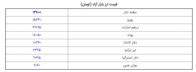 قیمت ارز در بازار آزاد