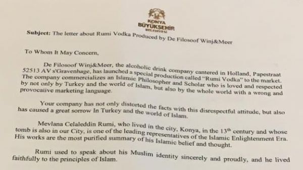 گفته شده که این نامه به سفارت هلند در ترکیه هم فرستاده شده است و شهردار قونیه حتی در حساب توییتر خود نوشت: "ما در تلاش هستیم تا تولید نوشابه الکلی به نام رومی را در هلند متوقف کنیم. حضرت مولانا نه تنها یک ارزش مهم قونیه است، بلکه از مهمترین چهرههای تاریخی ترکیه و جهان است."
