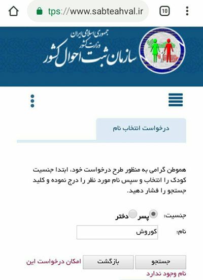 سازمان ثبت احوال: انتخاب نام کوروش حذف نشده است/ ممکن است اشتباه از سایت بوده باشد!