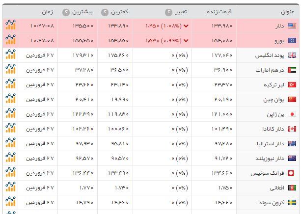 قیمت دلار, یورو , پوند ,سکه و طلا در بازار امروز چهار شنبه ۲۸ فروردین