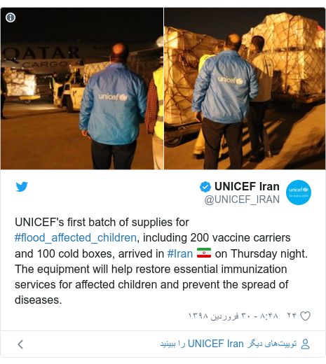 روز جمعه یونیسف اعلام کرد که اولین کاروان کمکهای این سازمان وارد ایران شده است.