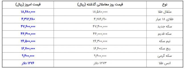 هر گرم طلای ۱۸ عیار هم ۴۳۱ هزار و ۲۰۰ تومان ارزشگذاری شده است، ضمن آنکه در بازارهای جهانی نیز هر اونس طلا ۱۲۷۶ دلار قیمت خورد.