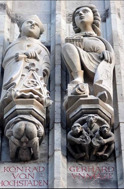 این مجسمه که مجسمه اسقف اعظم قرن سیزدهم این کلیسا بر آن قرار گرفته در اصل برای به تصویر کشیدن این امر بوده که این قدیس بر امیال دنیوی غالب آمده و به عبارتی میل جنسی را «زیر پا گذاشته» است.تصویر دیگر که مربوط به مجسمهای میشود که جماع یک نیمانسان نیمحیوان با یک بز را نشان میدهد در اصل تصویر، خدایگان یونانی-رومی میشود که در موزه پاپیری شهر ناپل ایتالیا نگهداری میشود.