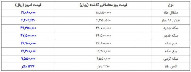 هر گرم طلای ۱۸ عیار هم ۴۴۰ هزار و ۴۰۰ تومان ارزشگذاری شده است، ضمن آنکه در بازارهای جهانی نیز هر اونس طلا ۱۲۷۶ دلار قیمت خورد.