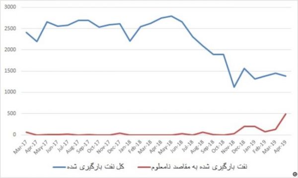منبع: رادیوفردا، بر اساس آمارهای شرکت کپلر مقصد بخشی از نفت بارگیری شده ایران معلوم نیست و آمارهای کپلر نشان میدهد که از زمان آغاز تحریمهای نفتی آمریکا، میزان صادرات پنهانی نفت ایران افزایش داشته است.ایران با توسل به انواع راهها، مانند انتقال نفت از یک کشتی به کشتی دیگر در میانه راه، خاموش کردن سیستم ارسال سیگنال نفتکشها و غیره بخشی از نفت خود را پنهانی میفروشد. جمهوری اسلامی میگوید تحریمهای آمریکا را به رسمیت نمیشناسد و برای شکستن تحریمها هر تلاشی خواهد کرد. بخشی از نفت ایران به مقصد چین نیز برای ذخیره کردن آن در انبارهای نفتی چین است و در اسناد رسمی عنوان «صادرات» نمیگیرد.