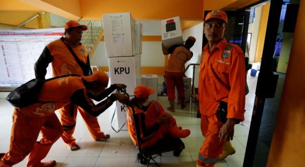 همکاران کمیته انتخابات اندونزیگزارش‌ها از کند پیش رفتن جریان انتخابات حکایت می‌کنند. در مناطقی همکاران کمیته انتخابات باید صندوق‌های رای را در بالای سر با دست نگه می‌داشتند و از میان آب رودخانه عبور می‌دادند.