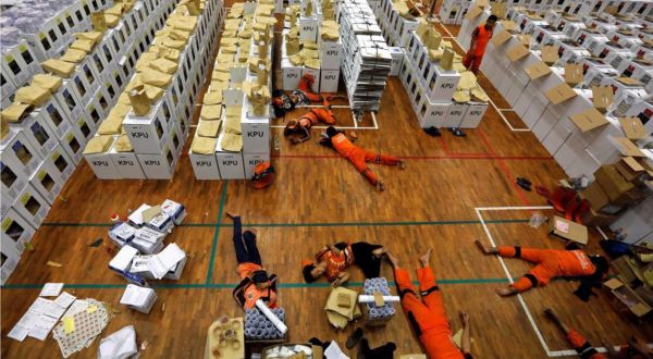 انتخابات پارلمان، محلی و ریاست جمهوری در یک روز به طور هم‌زمان در اندونزی برگزار شد دویچه وله :کمیته انتخابات اندونزی اعلام کرد که بیش از ۲۷۰ نفر از همکاران این کمیته که در شمارش آرای انتخابات پارلمانی و ریاست جمهوری این کشور کمک می‌کردند، در پی عوارض ناشی از خستگی شدید جان خود را از دست داده‌اند.