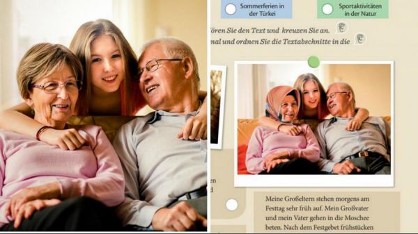 در یکی دیگر از عکسهایی که در این کتاب درسی استفاده شده است یک نوجوان دختر در کنار یک زوج مسن دیده می شود. در عکس اصلی زن مسن حجاب ندارد. این در حالی است که در این کتاب درسی عکس دستکاری شده و برای زن مسن حجاب گذاشته شده است.وزارت آموزش و پرورش ترکیه تاکنون به انتقادات مطرح شده در مورد دستکاری در عکسهای این کتاب درسی واکنشی نشان نداده است.