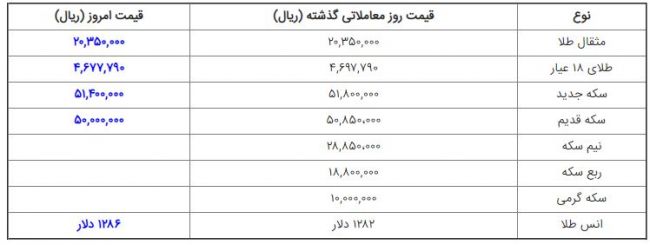 هر گرم طلای ۱۸ عیار هم ۴۶۷ هزار و ۷۰۰ تومان ارزشگذاری شده است، ضمن آنکه در بازارهای جهانی نیز هر اونس طلا ۱۲۸۶ دلار قیمت خورد.