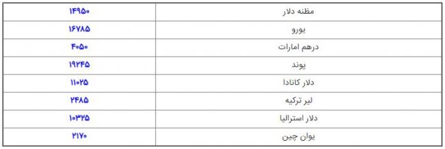 اما قیمت ارز مبادلهای؛ براساس اعلام بانک مرکزی نرخ هر دلار آمریکا برای امروز (دوشنبه ۲۳ اردیبهشت ماه) بدون تغییر نسبت به روز گذشته ۴۲ هزار ریال قیمت خورد. همچنین هر پوند انگلیس با کاهش قیمت نسبت به روز گذشته امروز ۵۴ هزار و ۶۴۸ ریال و هر یورو نیز ۴۷ هزار و ۱۷۱ ریال ارزشگذاری شد.