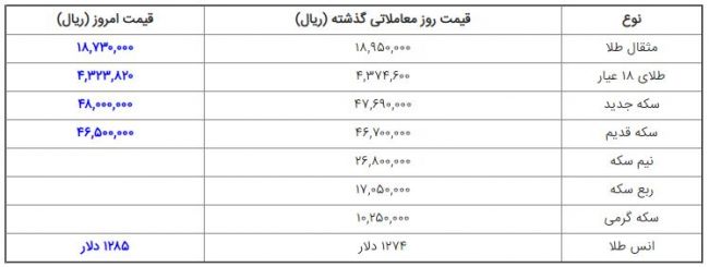 قیمت سکه و قیمت طلا در بازار آزاد امروز شنبه ۴ خرداد ۱۳۹۸ - ۲۵ می ۲۰۱۹