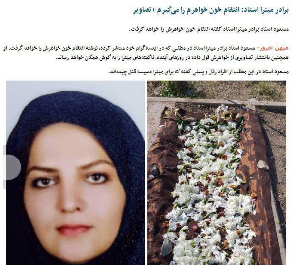 برادر میترا استاد: انتقام خون خواهرم را میگیرم