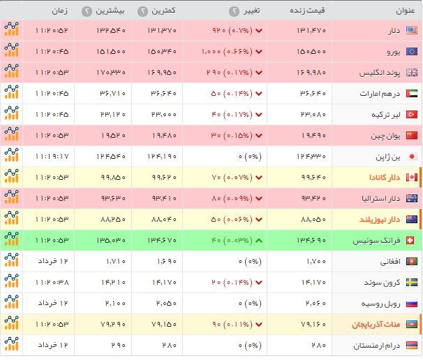 برای همین در این گزارش متوسط قیمت خرید ارز در صرافیها را در نظر گرفتهایم در حالتی که مشتری یک آدم معمولی است و قصد دارد اسکناسهایی به ارزش زیر هزار دلار (احتمالا به قصد مسافرت) تهیه کند.قیمت سکه و قیمت طلا قیمت ارز در بازار امروز دوشنبه ۱۳خرداد
