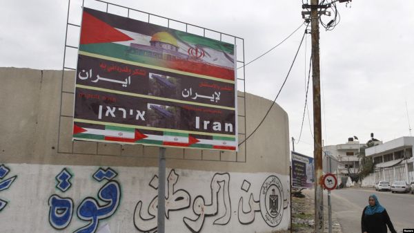 بیلبورد نصب‌شده در یکی از خیابان‌های غزه که بر روی آن به دو زبان فارسی و عربی نوشته شده است: «تشکر و قدردانی به ایران» رادیو فردا :فرنوش رام ( اسرائیل)