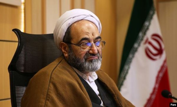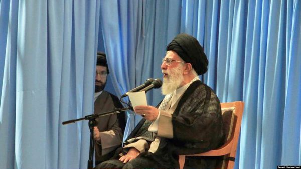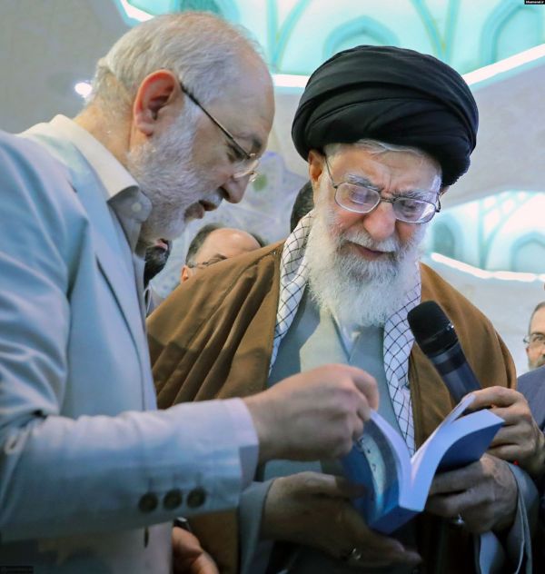 مسعود خامنه‌ای، در حال سخنرانی آیت‌الله خامنه‌ای از پس پرده به او نگاه می‌کند. رادیو فردا :، رضا حقیقت نژاد