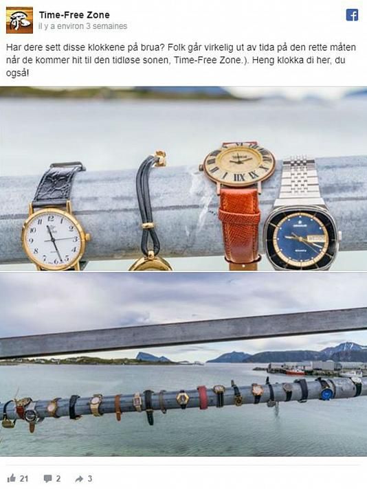 توریستهایی که به این جزیزه می آیند همانند عشاقی که قفل به نرده پلها مثلا در پاریس می بندند، ساعتهایشان را روی پل این جزیره به میلههای پل می بندند. نمادی برای اینکه نشان دهند وارد شهری می شوید که در آن زمان معنایی ندارد.حامیان این کارزار هفته گذشته طوماری را به مقامات محلی تحویل دادهاند تا این ایده در این جزیره قانونی شود.