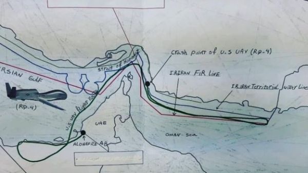 در همین حال، شامگاه پنجشنبه به وقت تهران محمدجواد ظریف، وزیرخارجه ایران هم در توییتر نقشه و مختصاتی را منتشر کرد و مدعی شد که ایران توانسته بقایای پهپاد آمریکایی را در آبهای خود پیدا کند.