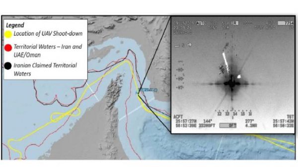 سرنگونی پهپاد آمریکا بر فراز تنگه هرمز بی بی سی :ایران در نامه‌ای اعتراضی به دبیرکل سازمان ملل متحد نسبت به آنچه نقض حریم هوایی این کشور از سوی پهپاد آمریکایی خوانده شده اعتراض کرده و همزمان محمدجواد ظریف مدعی شده بقایای این هواپیمای بدون سرنشین در آب‌های ایران پیدا شده است.
