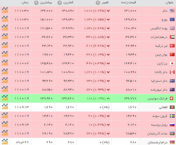 برای همین در این گزارش متوسط قیمت خرید ارز در صرافیها را در نظر گرفتهایم در حالتی که مشتری یک آدم معمولی است و قصد دارد اسکناسهایی به ارزش زیر هزار دلار (احتمالا به قصد مسافرت) تهیه کند.قیمت سکه و قیمت طلا قیمت ارز در بازار امروز شنبه ۱ تیر