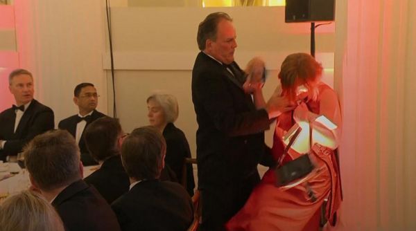 درگیر شدن معاون وزیر خارجه بریتانیا با یک زن معترض از گروه فعالان تغییرات اقلیمی