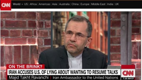 مجید تخت‌روانچی، نماینده دائم ایران در سازمان ملل متحد هم روز سه‌شنبه در گفتگو با شبکه خبری سی‌ان‌ان با تاکید بر فشار تحریم‌ها بر مردم ایران گفت کشورش در یک جنگ اقتصادی با ایالات متحده است.