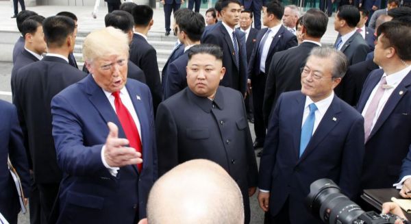 ترامپ به عنوان نخستین رئیس جمهور آمریکا وارد خاک کره شمالی شد. ترامپ گفت: «بسیار مفتخرم که توانستم از خط مرزی عبور کنم.» کیم و ترامپ سپس به همراه رئیس جمهور کره جنوبی در خاک این کشور رایزانیهای خود را در پشت درهای بسته آغاز کردند.