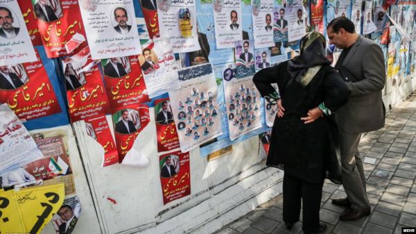 تبلیغات انتخابات در سطح شهر تهران - آرشیو صدای آمریکا :رئیس «کمیته راهبردی جبهه اصلاحات» از جلسات منظم اصلاح طلبان و اصولگرایان با رهبر جمهوری اسلامی خبر داده و یکی از محورهای آن را تلاش برای امیدوار نگه داشتن شهروندان ایران به شرکت در انتخابات دانسته است.محسن رهامی روز شنبه ۱۵ تیر در گفتگو با روزنامه سازندگی عنوان کرد که از دو سال پیش هفتهای یک بار حدود ۸ اصلاح طلب و ۸ اصولگرا به دیدار آیتالله خامنهای میروند و درباره مباحثی مانند انتخابات و کاهش اختلافات بین دو جناح سیاسی گفتگو میکنند.